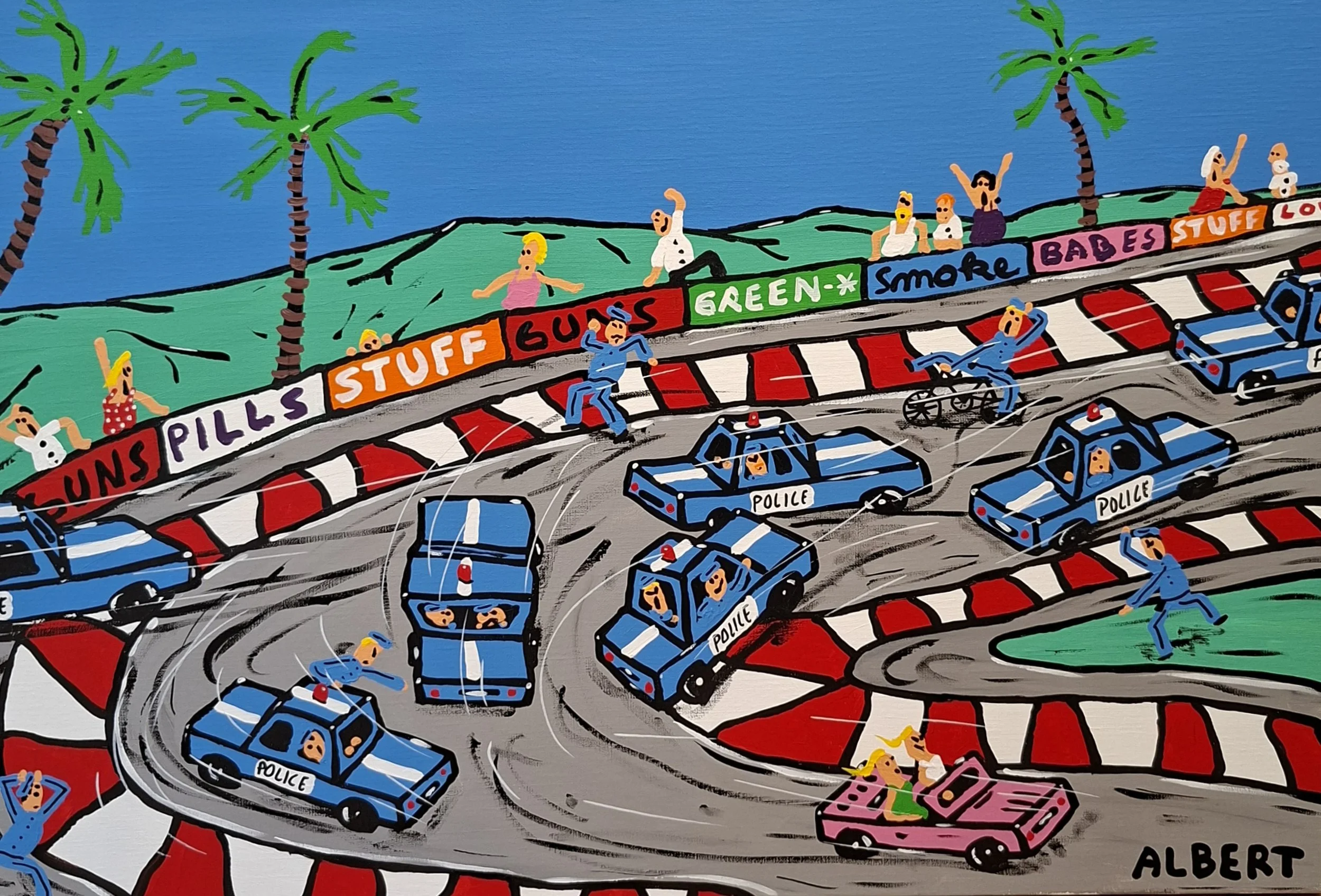 Albert Willem est un artiste figuratif contemporain, vivant et travaillant à Bruxelles. Il est surtout connu pour ses peintures naïves, pleines d’esprit et d’humour. Son style se caractérise par une approche folklorique et infantile.