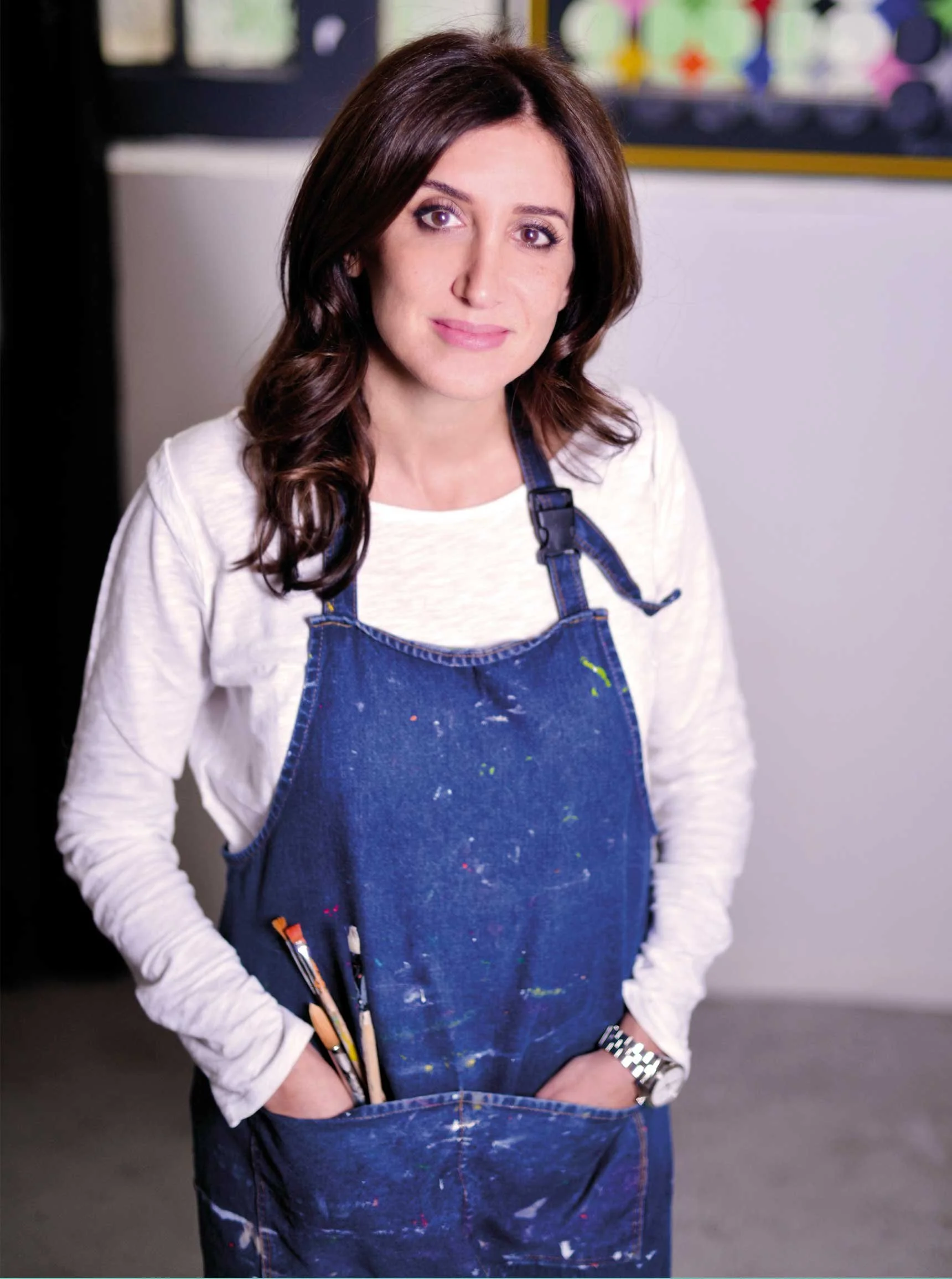 Dans ses œuvres, Arièle Rozowy cherche à capturer un instant précis, une parcelle de la vie d’une femme. Chaque tableau, composé de cercles en mouvement, symbolise son évolution, les différentes phases de son existence et son adaptation aux défis.
