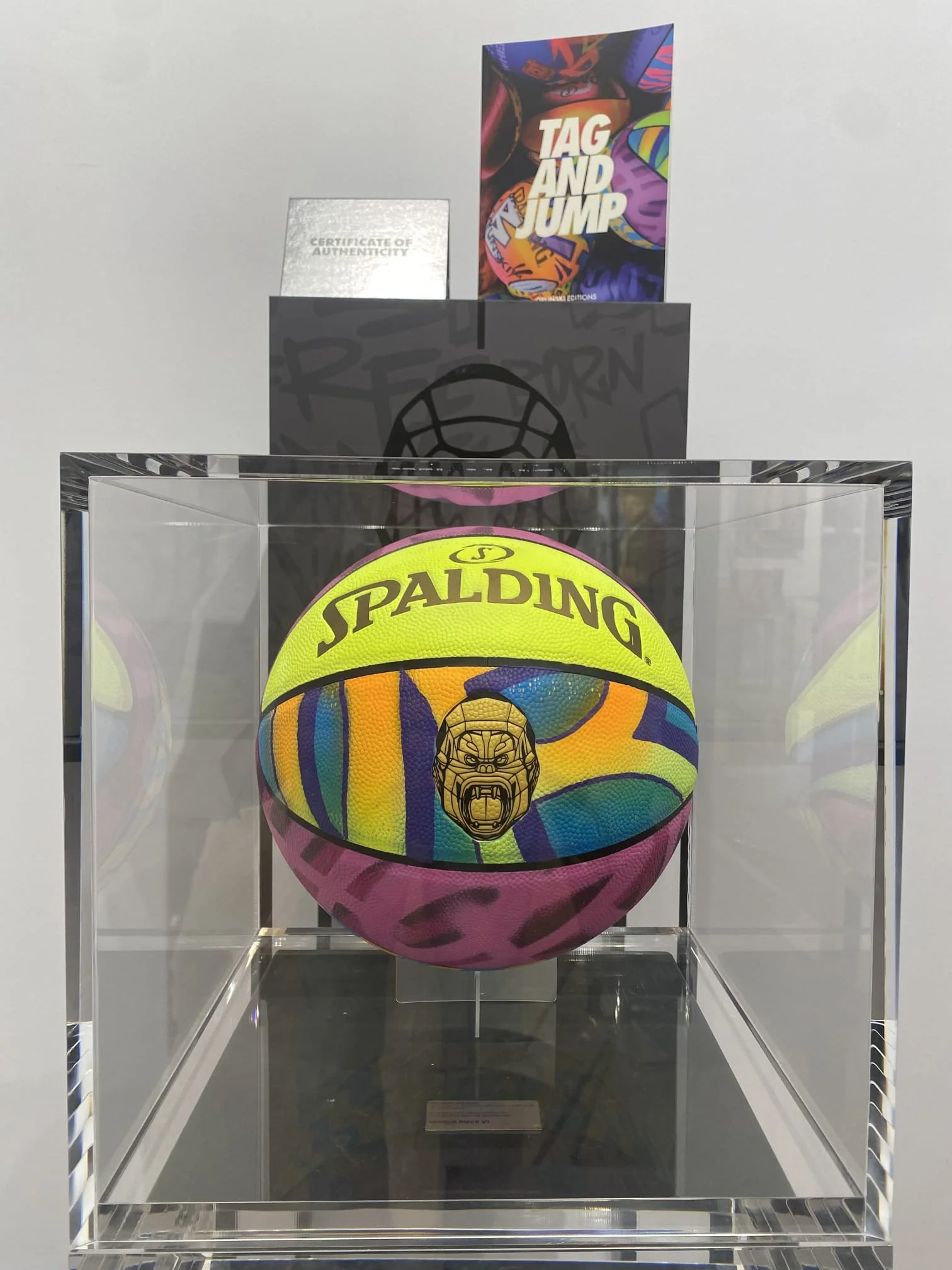 “Basket Ball Orlinski” by Richard OrlinskiŒuvre originale dans un coffre en plexiglas30 x 30 x 30 cm - 2025
