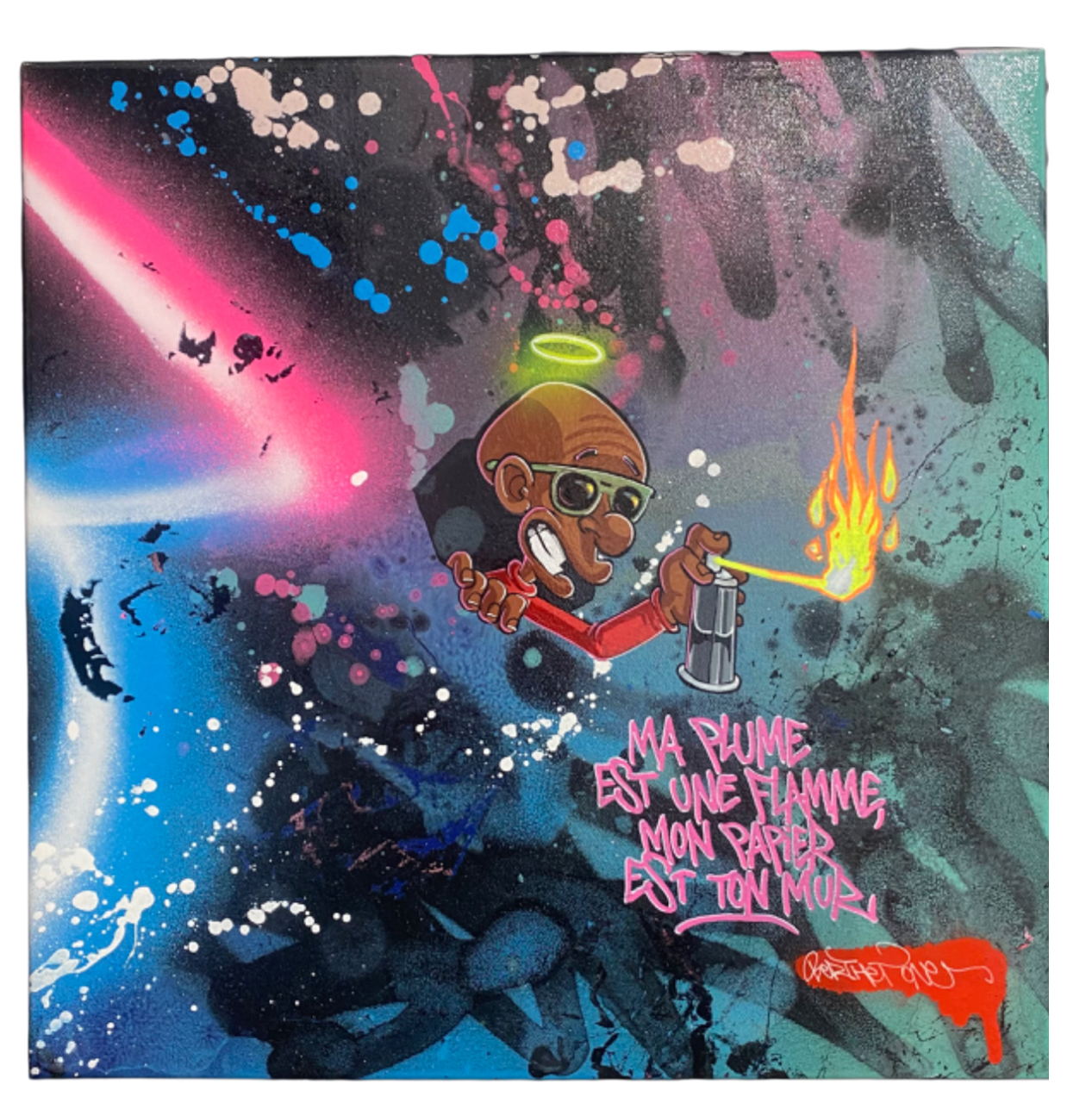 Artiste engagé, son style allie figuration et satire. Que ce soit sur les planches ou les murs, ses œuvres véhiculent des messages subversifs, critiques ou humoristiques.