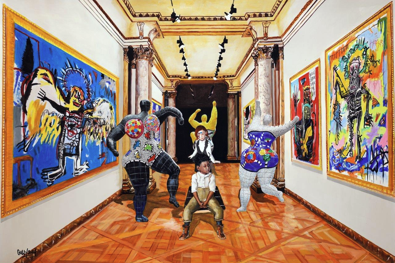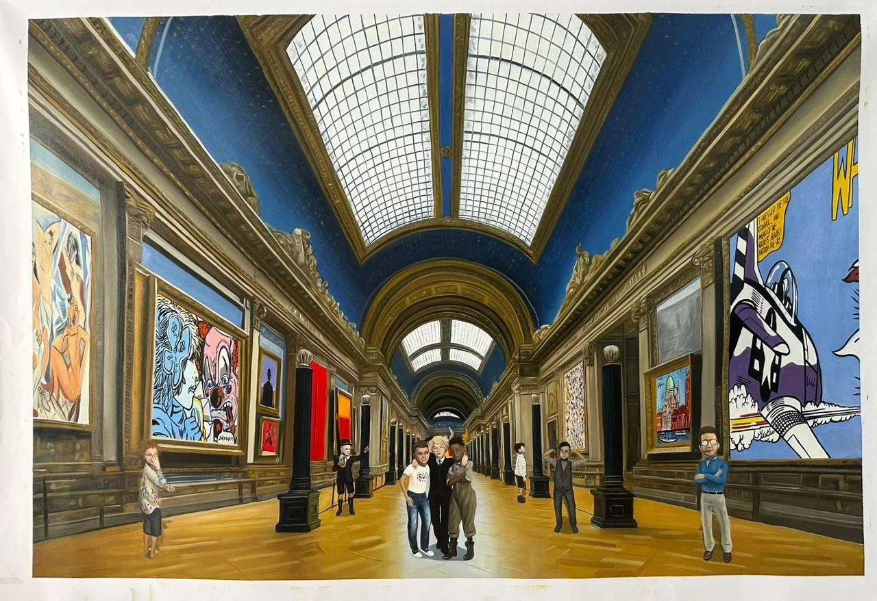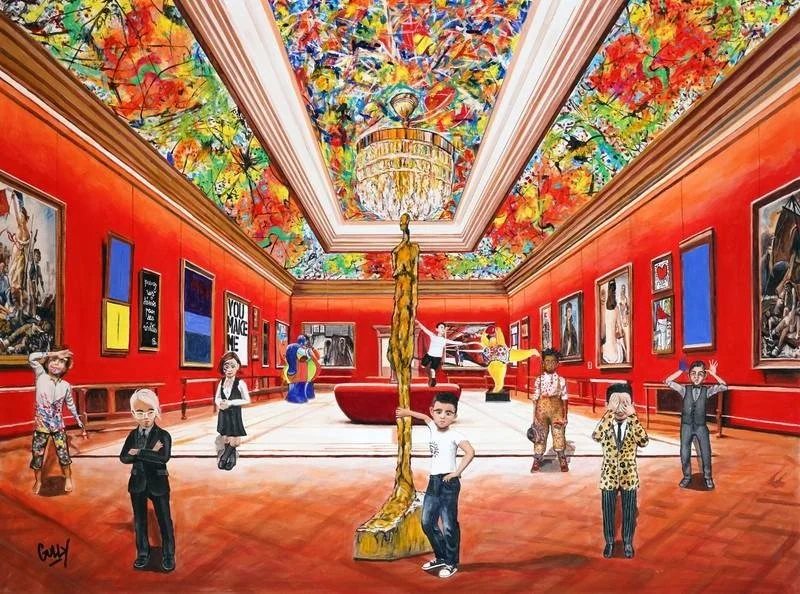 Dans ses toiles, les personnages ne se contentent pas de regarder les tableaux des grands-maîtres reproduits à la perfection, ils interagissent et jouent avec dans un contexte précis. Gully souhaite raconter à travers des yeux innocents, sa passion pour l’Art.
