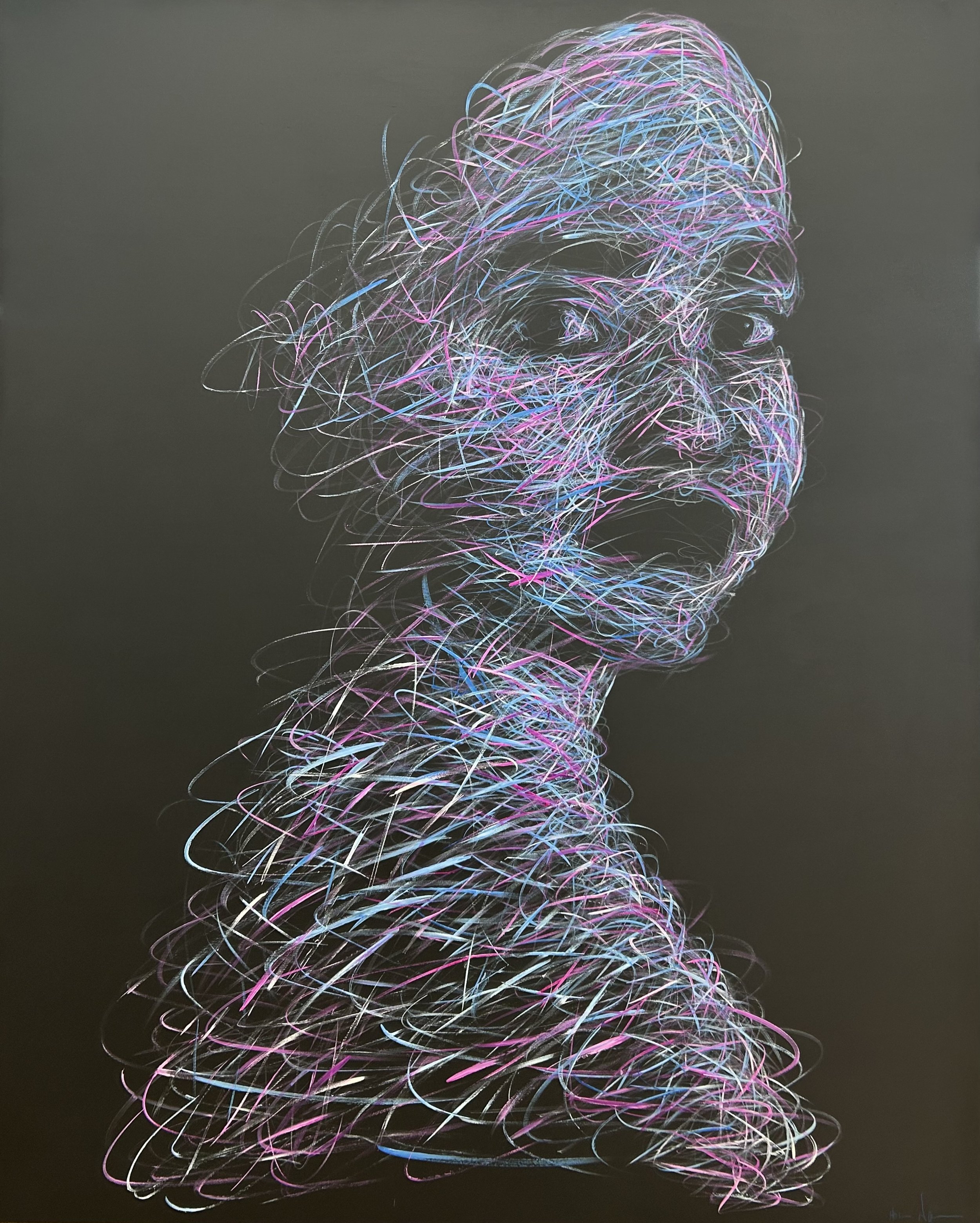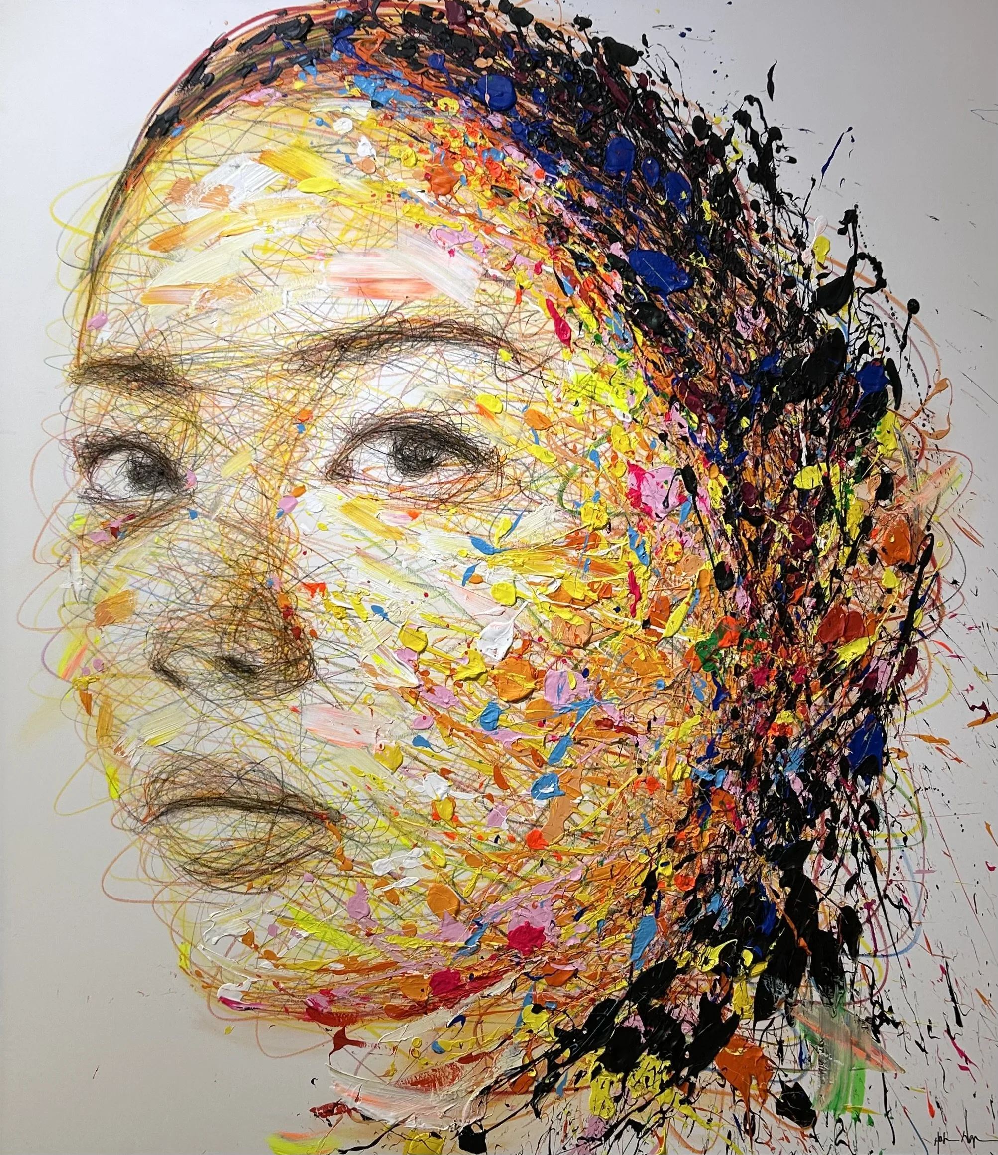 Hom Nguyen, artiste contemporain français d’origine vietnamienne, est né à Paris en 1972. Autodidacte, il exprime l’émotion brute à travers ses portraits monumentaux. Son style instinctif mélange fusain, feutre, gouache, huile et stylo. Chaque œuvre devient un face-à-face intense avec la matière, révélant l’essence de l’humain.