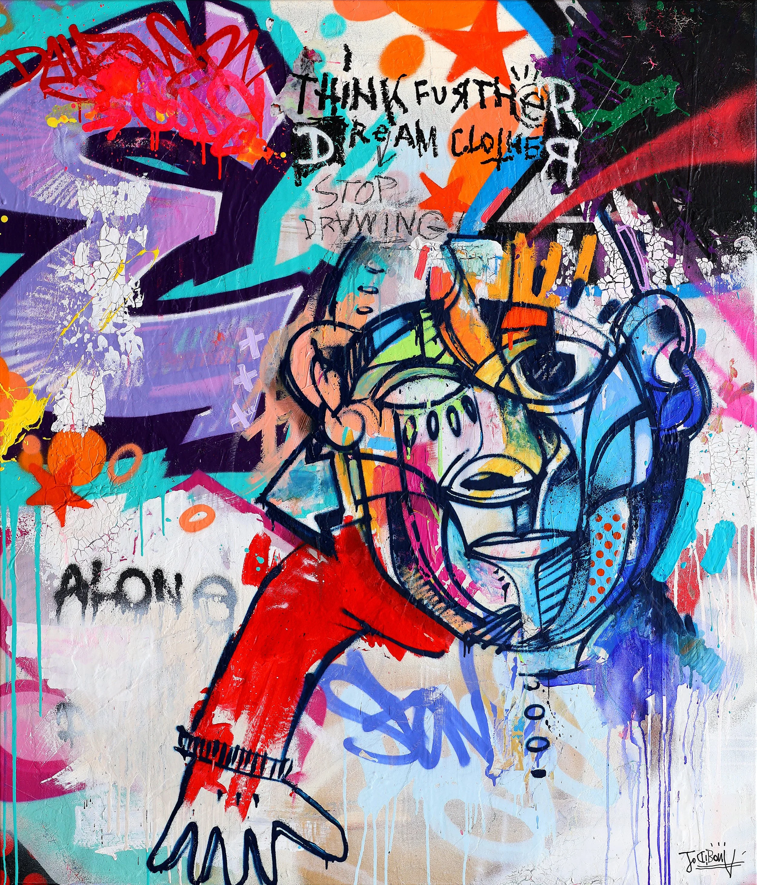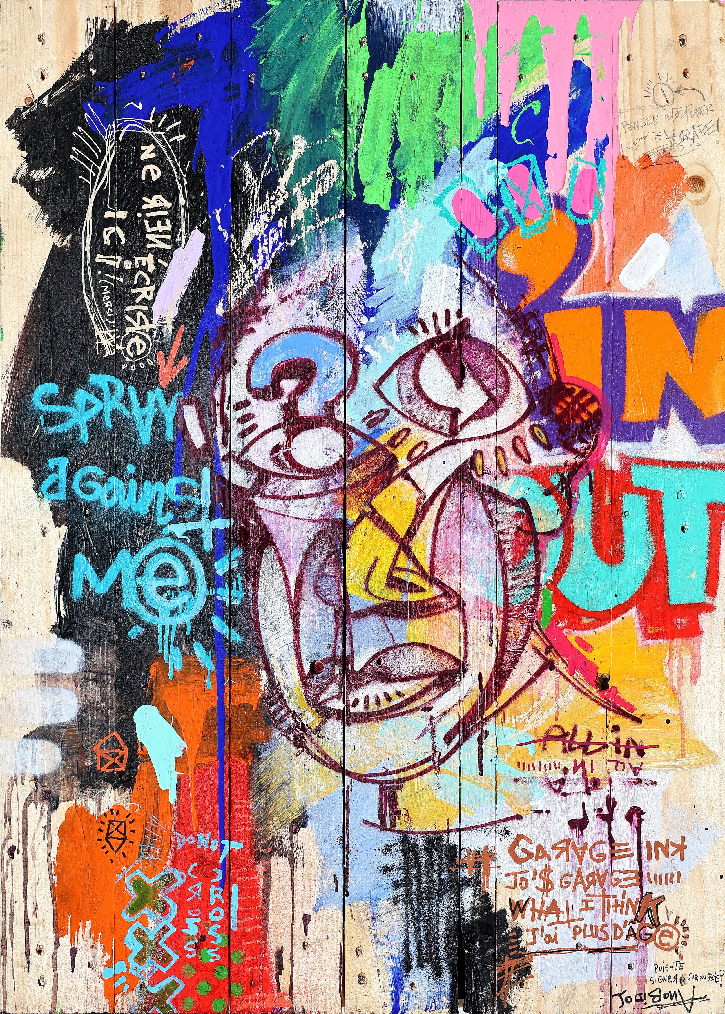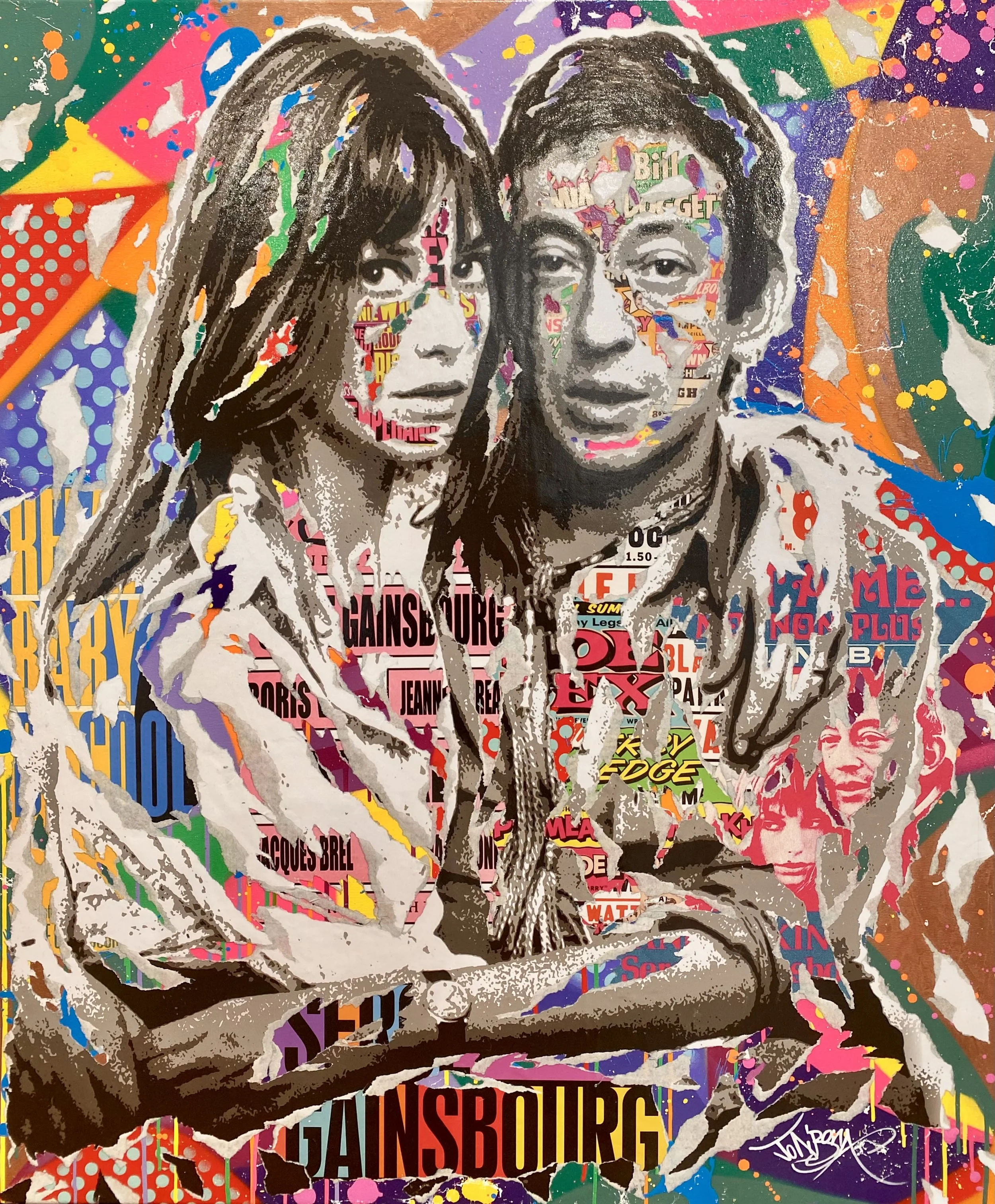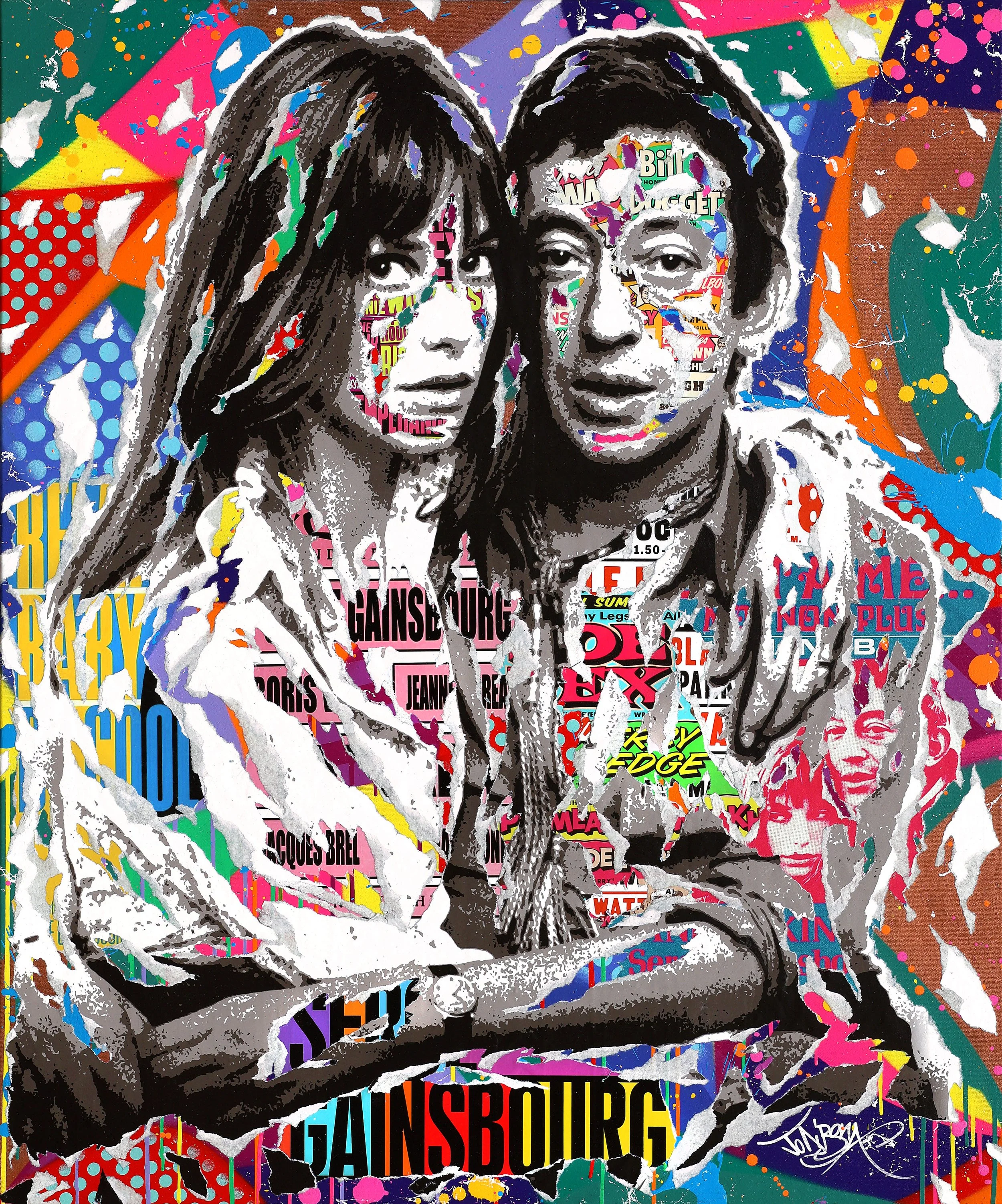 Figure emblématique de la scène Street Art parisienne, Jo Di Bona doit son succès fulgurant à sa technique unique qu’il a lui-même inventée : le Pop Graffiti, où il associe collages, diverses influences du graffiti et la culture pop dont il s’est profondément imprégné. Fauviste des temps modernes, Jo mélange couleurs et mouvements pour créer des visages empreints de poésie, d’émotions et de joie de vivre. Dans ses oeuvres, Jo rend hommage avec la même tendresse aux icônes et grands personnages de l’histoire qu’aux inconnus de passage, nourri par le regard généreux qu’il porte sur l’humain car “le plus important à ses yeux, c’est le partage”.