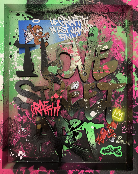“Le graffiti n’est jamais fini” by Berthet Oneœuvre originale, technique mixte sur bois 64 x 57 cm - 2024