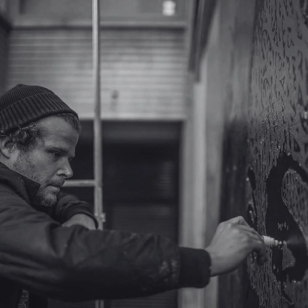 À l’aube des années 1990, il découvre l’univers des tags new–yorkais. Bombe aérosol en main, il s’attaque à la peau des murs, de Paris à New York. Il multiplie performances et interventions à Paris, Lyon et Marseille, puis à Shanghai, Hong-Kong et Djakarta…. Il utilise ensuite la toile, le panneau, les plaques de métal… Son registre se métisse sous des influences multiples : l’action painting, l’art nègre, les tatouages maoris. Mais c’est le mot qui domine. Un maillage de mots, le plus souvent indéchiffrables et qui, assemblés, composent des portraits et des autoportraits. Portraits évidents et textes codés, soit un jeu subtil d’apparition/disparition, où ce qui relève de la calligraphie, des glyphes, des idéogrammes, se déréalise, laissant planer le mystère.