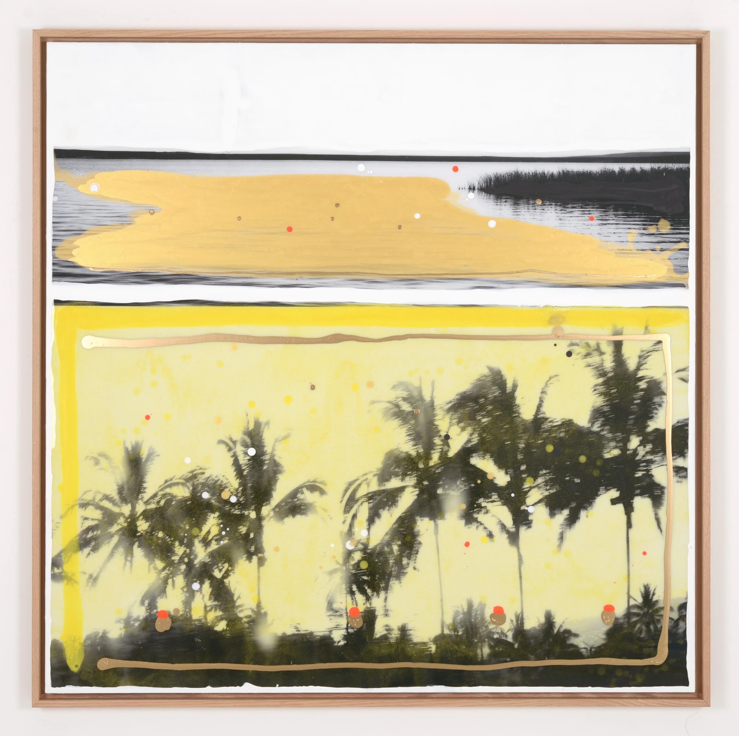 “Sunset” by Edouard BuzonVernis époxy, pigments, photographies sur aluminium100 × 100 cm2026 View on a Wall